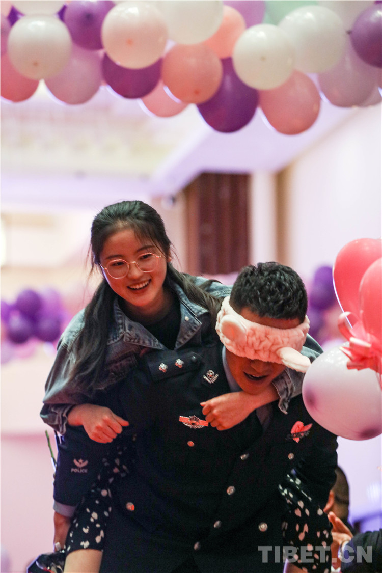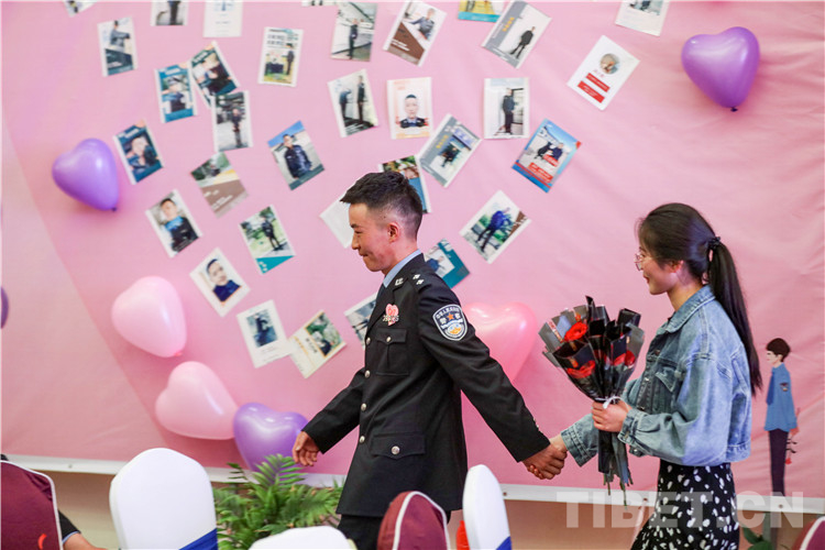 活動過程中,總站形象宣傳片《我是誰》,向女嘉賓們展現(xiàn)了西藏移民管理警察的職業(yè)特點(diǎn),使女嘉賓對民警工作職責(zé)產(chǎn)生了初步的認(rèn)識。在主持人的引導(dǎo)下,精彩的才藝展示和豐富的游戲環(huán)節(jié)很快將現(xiàn)場氣氛推向一個接一個的高潮。互動游戲“牽手牽愛”“心有靈犀”“守護(hù)愛情”“唯愛接力”通過聆聽詩句抓緊手指、借助比劃你問我答,相互協(xié)助完成任務(wù)等方式增進(jìn)了男女嘉賓之間的了解和默契,促進(jìn)了相互之間更好交流。男女嘉賓才藝表演和日喀則邊境管理支隊(duì)1753樂隊(duì)送上的精彩曲目,令活動現(xiàn)場青春洋溢。最終,18對男女嘉賓互生情愫,牽手成功,36對交換聯(lián)系方式,開啟更加深入的幸福交流。