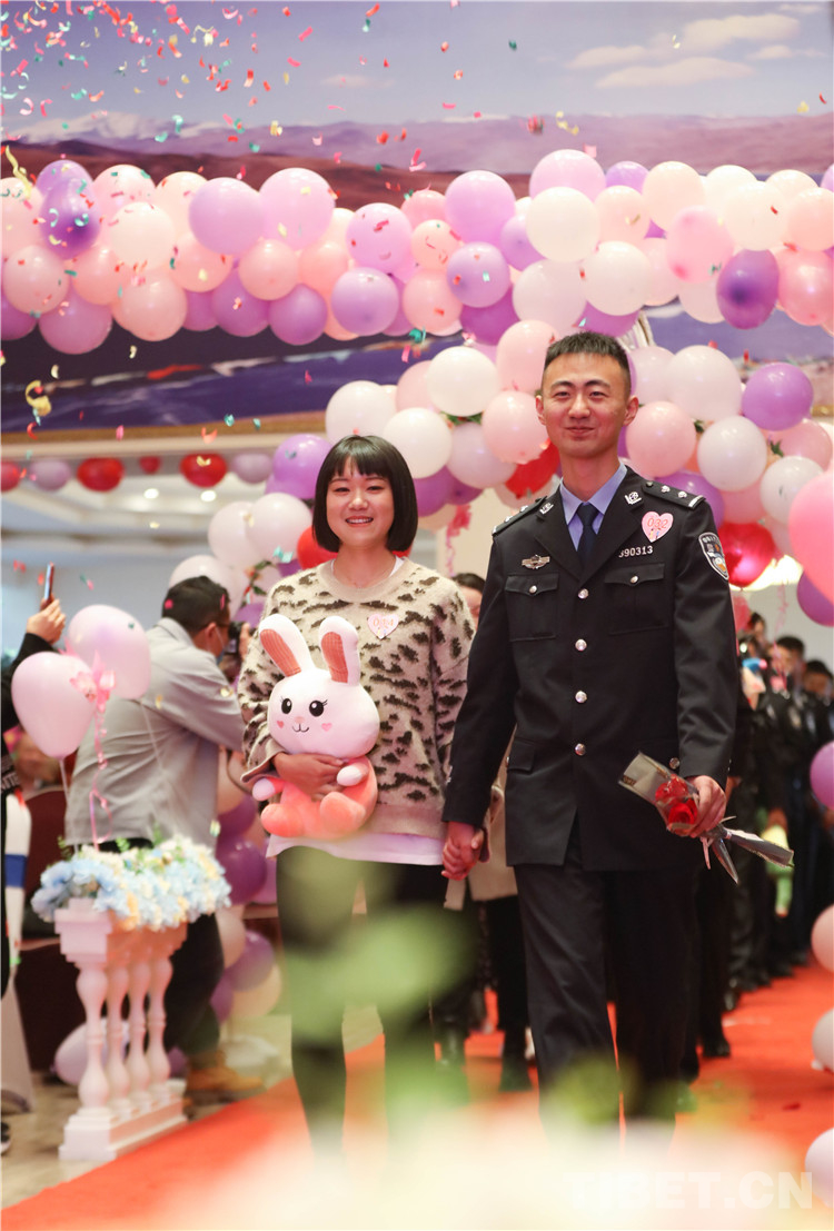 活動現(xiàn)場,公安部副部長、國家移民管理局黨組書記、局長許甘露通過視頻為參加活動的男女青年送上了祝福,日喀則邊境管理支隊(duì)黨委副書記、政治委員屠積福致辭。