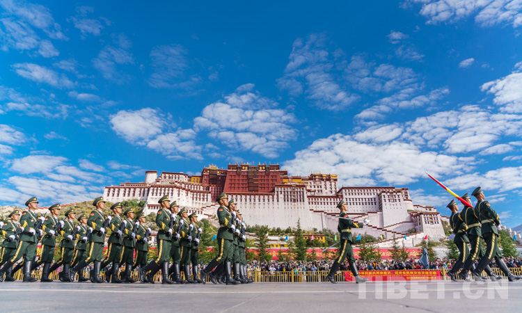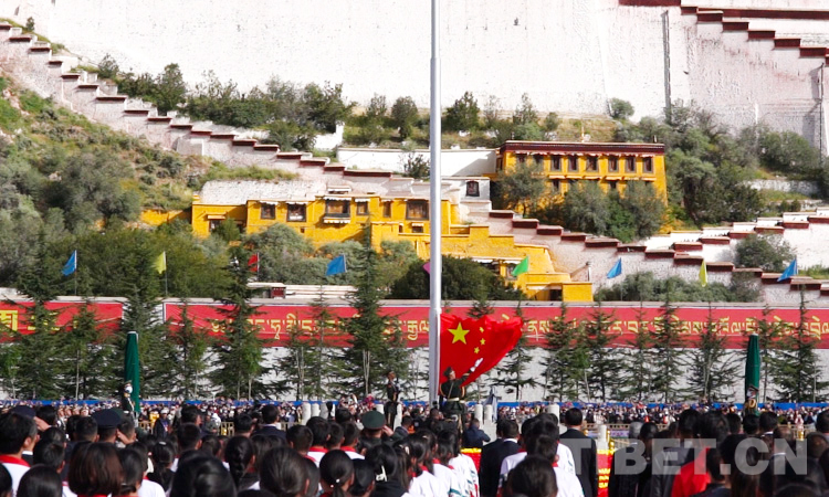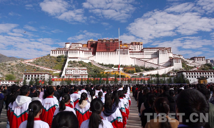 當(dāng)日,布達(dá)拉宮廣場(chǎng)上,漢、藏文“熱烈慶祝中華人民共和國(guó)成立72周年”的標(biāo)語格外醒目,西藏自治區(qū)以及拉薩市各族各界代表共1000余人參加了儀式。(中國(guó)西藏網(wǎng) 記者/趙耀)