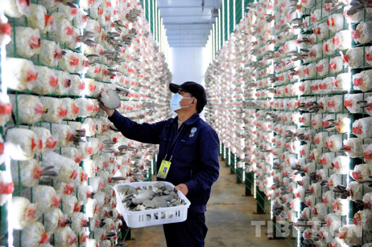 這座位于謝通門縣達那答鄉的食用菌基地占地345畝,建筑面積46.6畝,設有實驗室、原料庫、滅菌車間、攪拌車間、打包車間、冷卻車間、液體菌種培養室、接種室、菌包培養室、工廠化出菇棚、冷庫等,是西藏自治區唯一一家集菌棒制作、生物菌生產培育、生物質燃料與有機肥制作、種植技能培訓于一體的規模化、集約化、標準化、現代化、循環綠色生物科技示范園區。