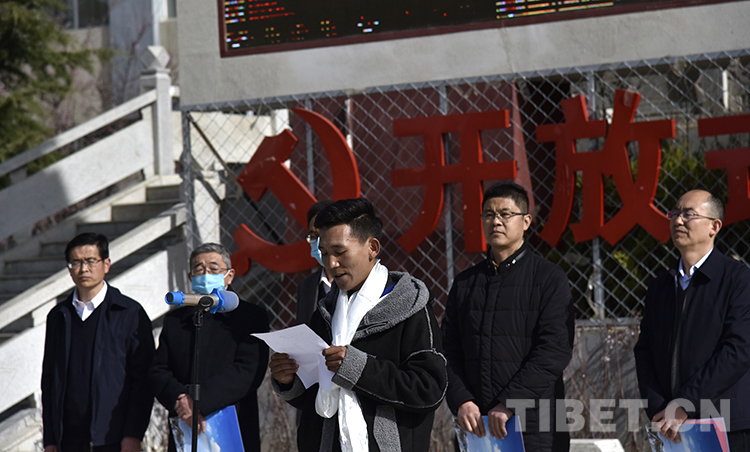 圖為西藏職業技術學院2020屆首批區外就業畢業生出征儀式上,邊巴次仁發言(資料圖) 攝影:王媛媛