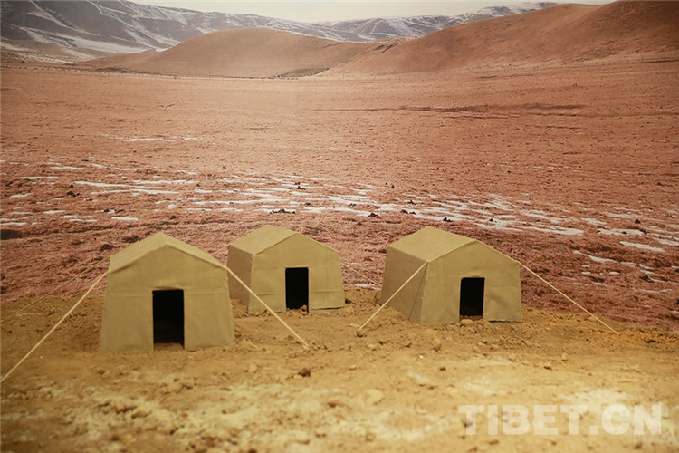 展廳內三頂帳篷的模型,模擬了當年金銀灘草原上的場景。