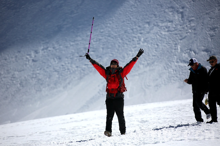 中國西藏網訊 “今天,我完成了心中的雪山夢。”來自湖南湘西的楊女士在洛堆峰海拔5600米的地方打卡拍照。