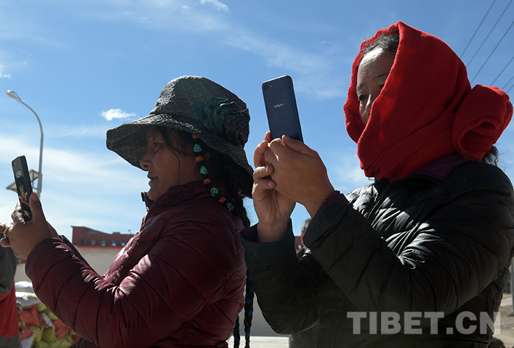 這是聶榮縣色慶鄉帕玉村兩位牧女使用手機了解外面的精彩世界?,F在,藏北高原許多牧民群眾使用上了手機(唐召明2019年9月27日攝)