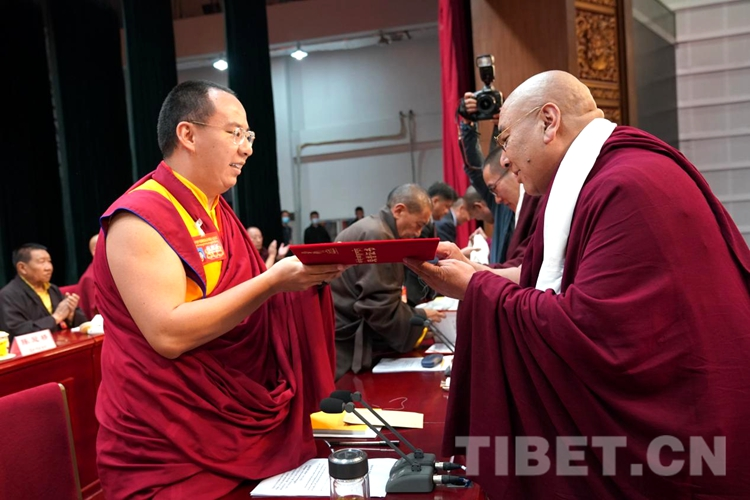 圖為班禪為優秀講經高僧、闡釋論文者頒獎 攝影:王淑