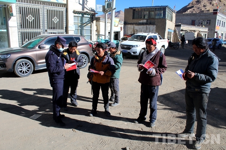圖為其美多吉在扎西宗鄉街道為轄區群眾宣傳戶籍辦理的常識