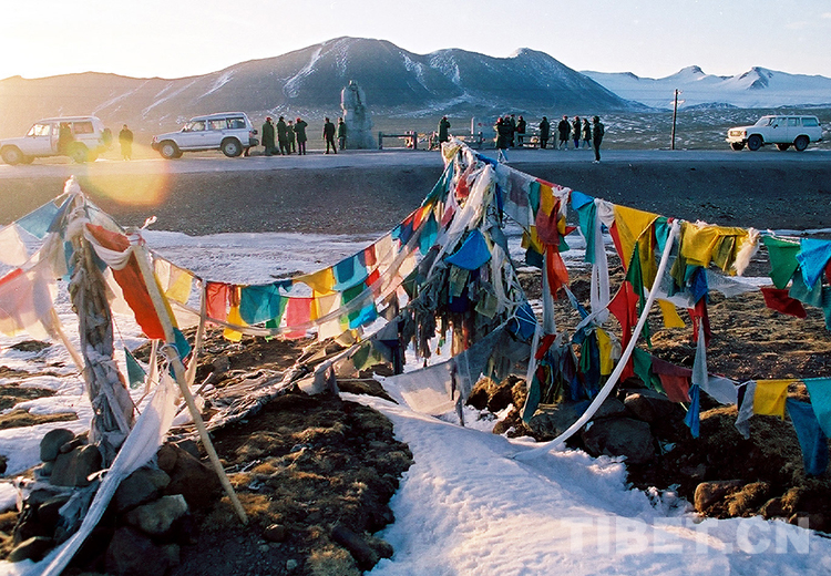 這是青藏公路所經過的海拔為5231米的唐古拉山口,現已成為游人的觀光之地(唐召明1996年攝)