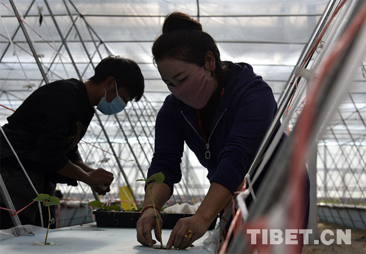 圖為那曲市的浙江援藏鄉村振興產業示范基地4500智能溫室里當地工人正種植蔬菜 攝影:王媛媛