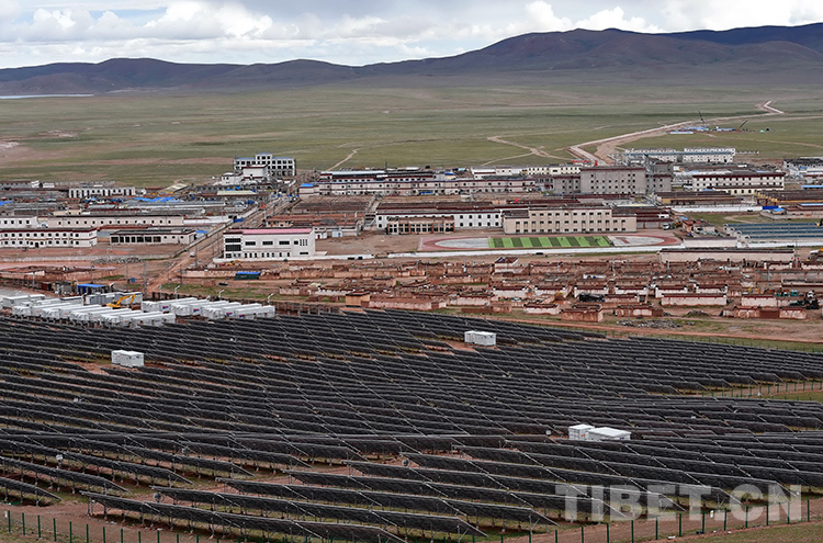 這是雙湖縣城新貌。前景是光伏電站成片的發電電池板(唐召明2017年7月25日攝)