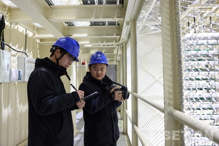 圖為拉薩換流站工作人員正在測(cè)溫 攝影:閆昱翰