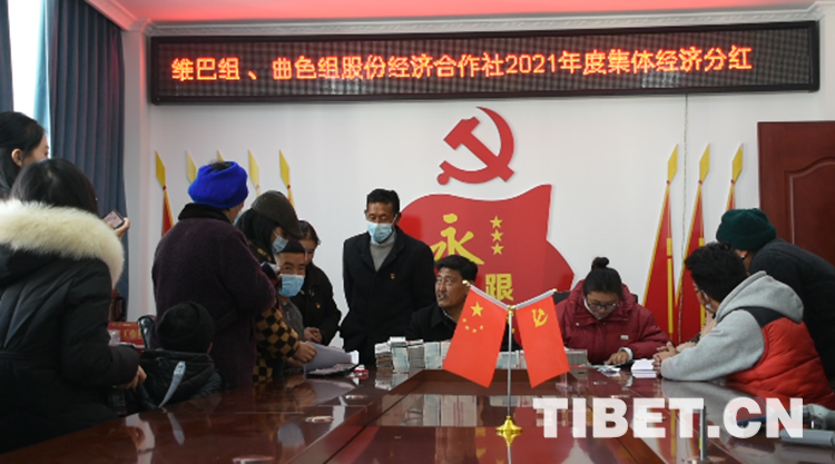 中國西藏網訊 在藏歷新年來臨之際,2月23日,西藏自治區拉薩市城關區奪底街道維巴村維巴組、曲色組股份經濟合作社2021年度集體經濟分紅,399戶共發放530650元分紅資金。