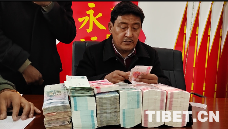 村民強巴卓嘎說:“我家有四口人,一個A股500元,三個B股每人250元,雖然都沒有在合作社上班,但每年分紅一分也沒有少過我們的。今年我們家領到了1250元的分紅,夠交這一年電費、衛生費,還可以買點兒年貨。不用干活還分錢的日子,我之前想都不敢想,說到底都是因為黨和政府,很感恩這一切的一切。”