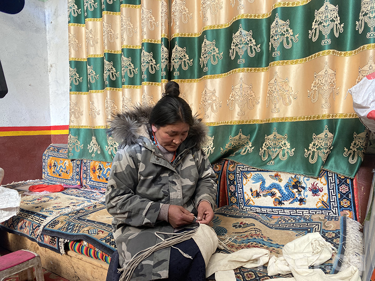 圖為江達縣卡貢鄉卡貢村白措在手工編制藏式腰帶