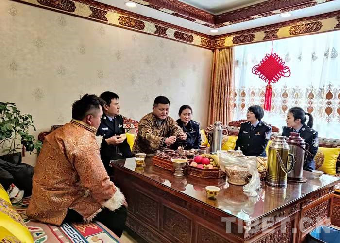 在藏歷水虎年到來之際,拉薩出入境邊防檢查站3名民警利用勤務(wù)間隙,帶著精心準備的節(jié)日慰問品前往結(jié)親民警尼瑪拉姆家中拜年。熱情好客的尼瑪拉姆一家用特色風干肉、煮牛肉、卡塞、時鮮水果等美食款待了前來結(jié)親的民警們。