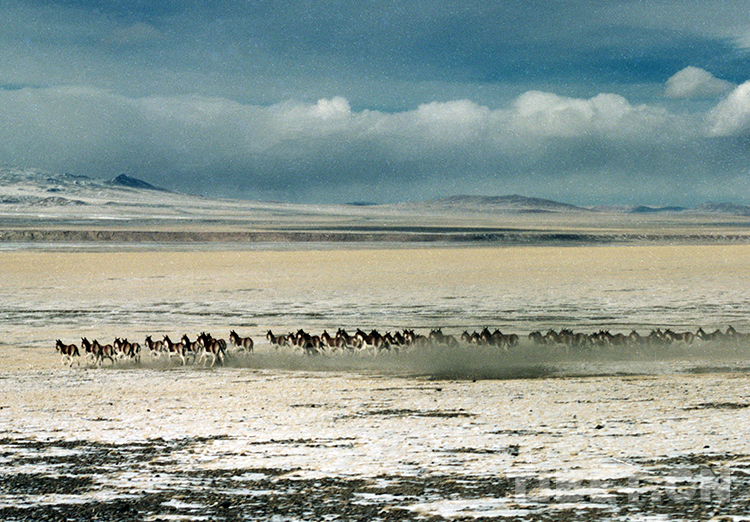 這是奔跑在羌塘國家級自然保護區的國家一級保護動物藏野驢(唐召明1987年攝)
