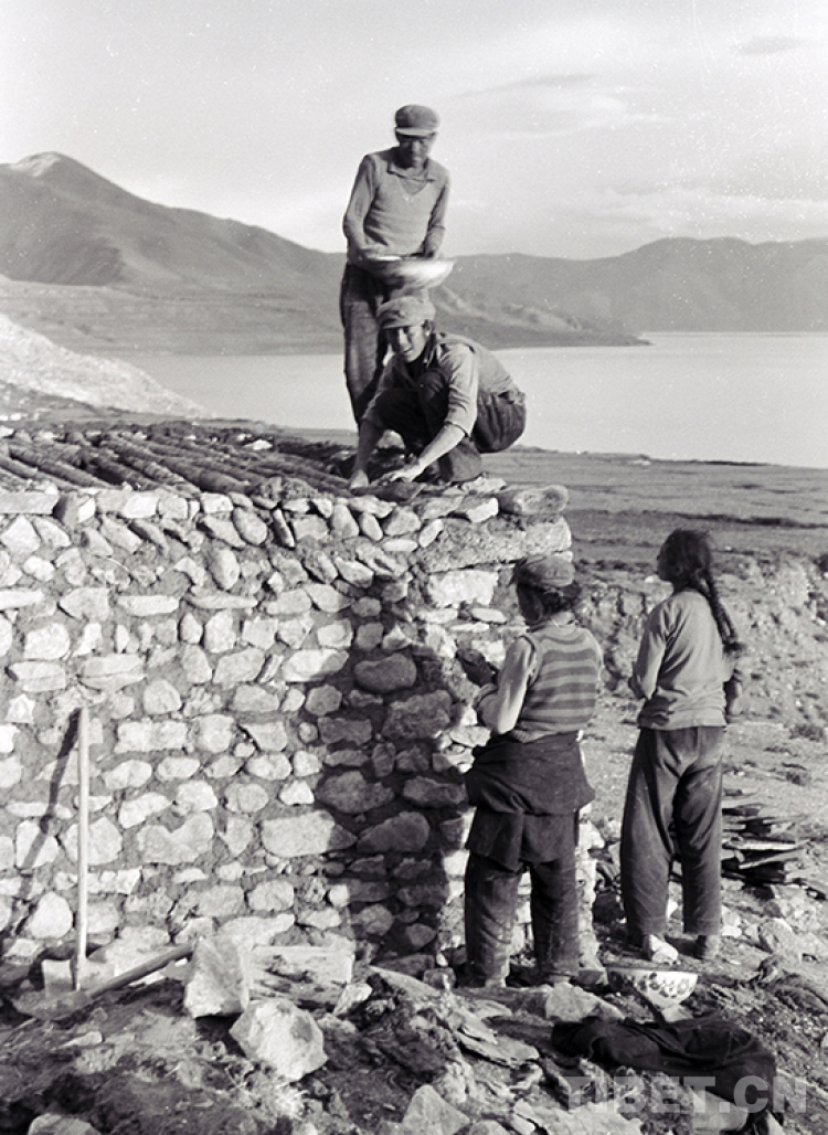 這是文部辦事處文部區文部鄉(現尼瑪縣文部鄉南村)的村民在當惹雍錯湖畔蓋石屋(唐召明1987年攝)