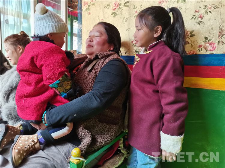 圖為土丁尼瑪妻子布姆親昵地抱著駐村干部鐘志勇的女兒晴晴玩耍