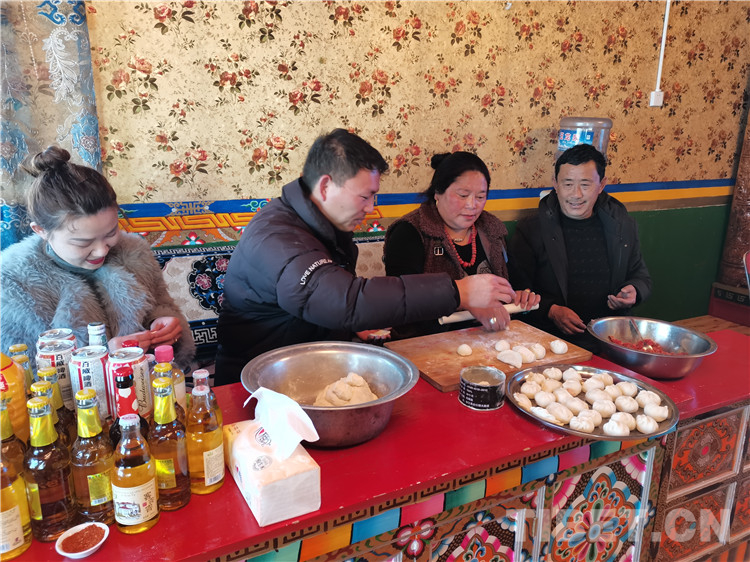 圖為鐘志勇夫婦與土丁尼瑪妻子布姆一起包包子和餃子