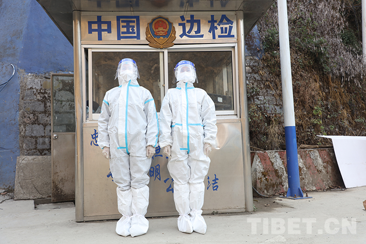圖為聶拉木出入境邊防檢查站女民警梅央和趙雪瑩在一線執勤 攝影:鄒興國
