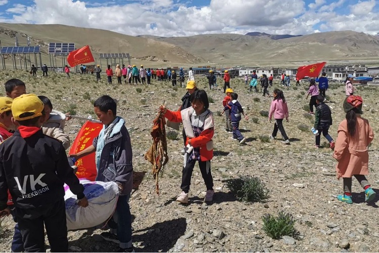 在如角鄉完全小學,學校組織師生參與社會實踐活動,在該鄉內外大小河道開展家園大掃除活動。小小少年爭當小小清潔工,爭先恐后掃地、撿垃圾、梳理河道、分類回收垃圾,個個忙得不亦樂乎,以這樣的方式爭做“創建國家生態文明高地”的行動者。師生們共同行動、互幫互助,用實際行動心連心守護神圣國土、手牽手建設幸福家園。