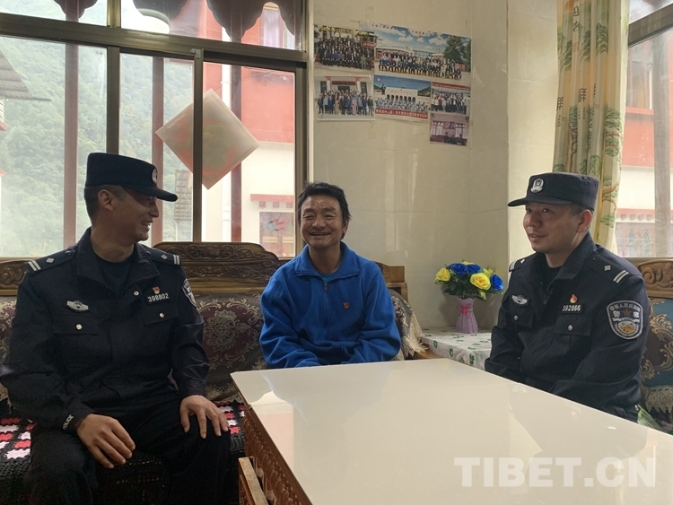 圖為西藏林芝背崩邊境派出所民警正在與轄區老黨員新生談論如今生活的變化 攝影:呂恒剛