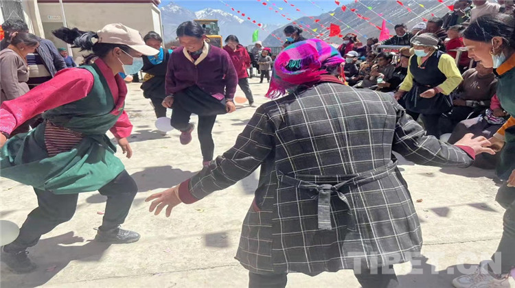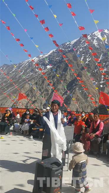 一大早,村民們匯聚在村委會,將一面鮮艷的五星紅旗冉冉升起,國歌在山谷中回蕩。村委會第一書記次仁扎西召集大家進行了新舊對比,憶苦思甜,感恩黨的關懷、感恩國家支持。宣講員白瑪卓嘎主講團結的益處,引導鄰里鄉親團結和睦,自覺守護中華民族大團結。在陣陣歡呼與掌聲中,汝村文藝演出隊跳起具有本村特色的鍋莊舞,84歲的曲珍老阿媽唱響《北京的金山上》。有著26年黨齡的老黨員德吉大姐用一曲《再唱山歌給黨聽》表達不忘黨恩,永遠跟黨走的決心。