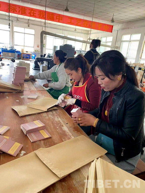 圖為工作人員正在打包發往基層的《漢藏對照術語規范明鏡》(2021)