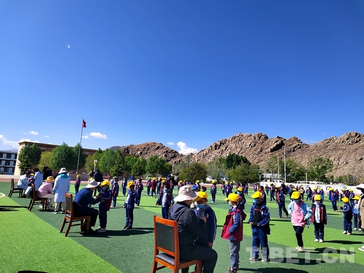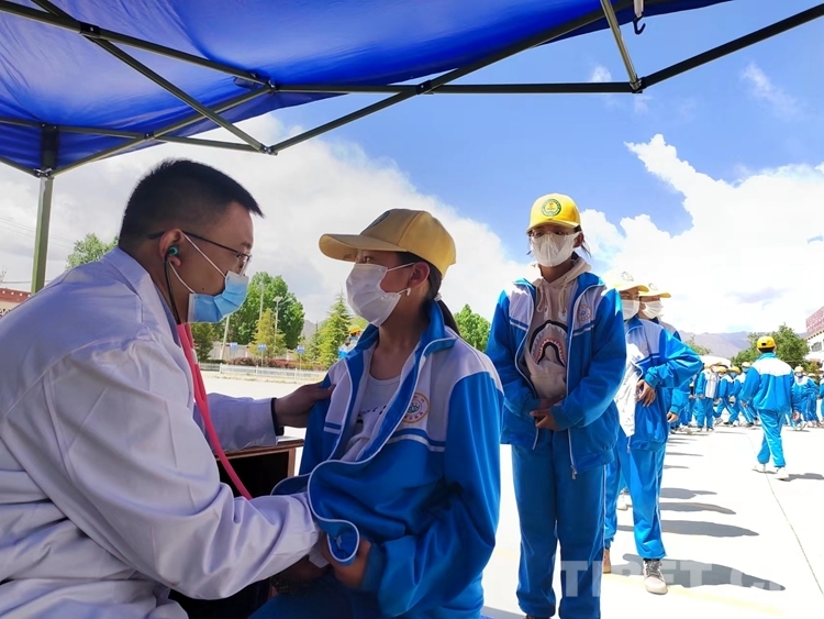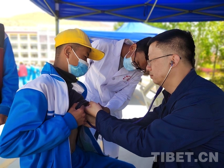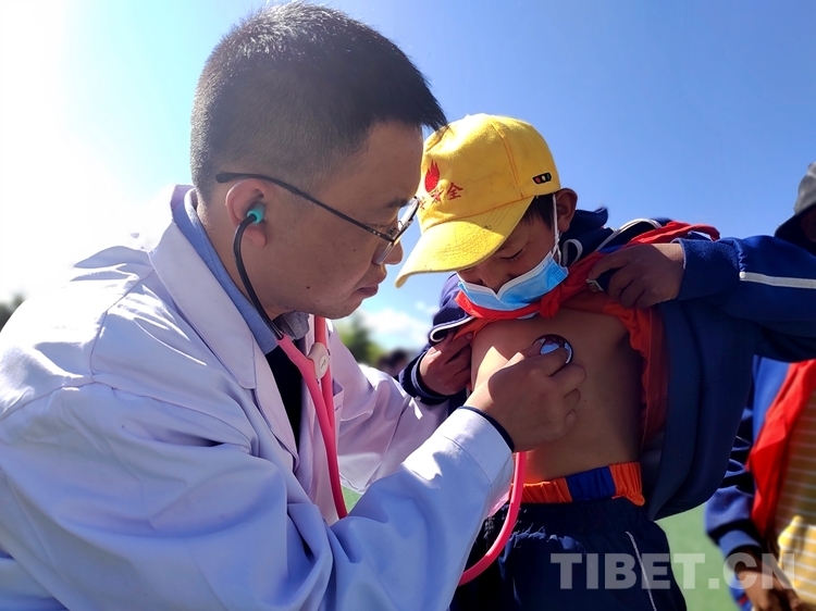 中國西藏網訊 4月22日,西藏自治區拉薩市曲水縣小學的操場上,600多名小學生有序站隊,來自南京醫科大學第二附屬醫院“心佑工程”團隊的醫生們,手拿聽診器,各人負責一個方陣的學生,開展初步聽診,開始了為期5天的全面篩查工作。
