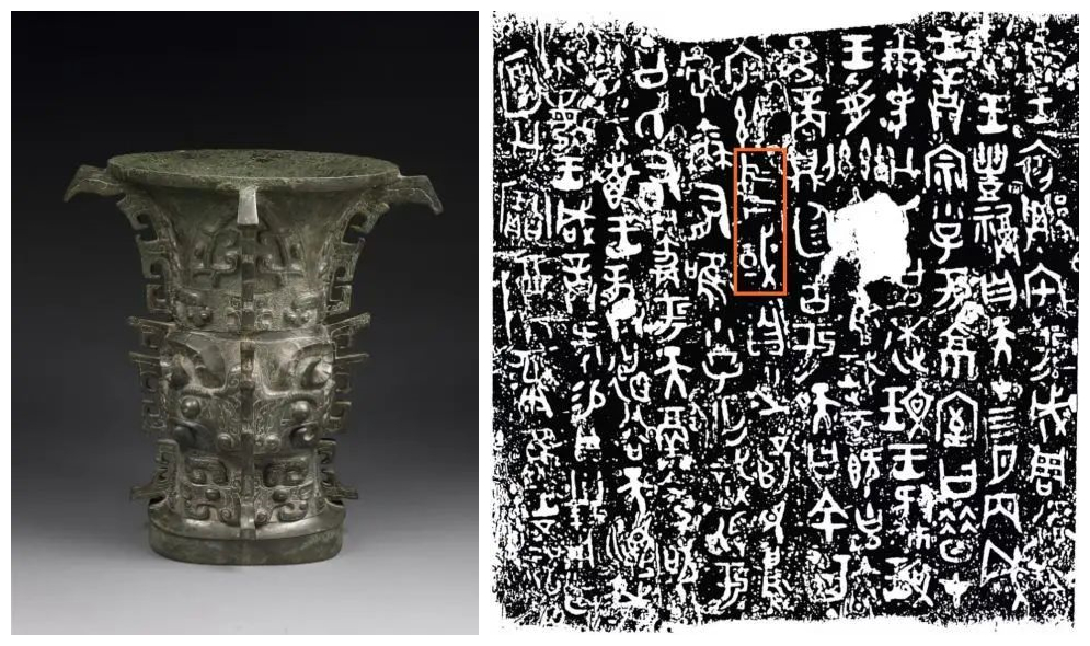 圖左為出土于陜西寶雞的西周早期青銅器、中國首批禁止出國(境)展覽文物、國家一級文物——何尊;圖右為何尊內底鑄銘文“中國”一詞。這是“中國”一詞最早的出土見證。 圖片來源:寶雞青銅器博物院