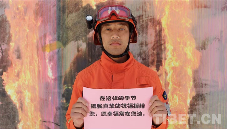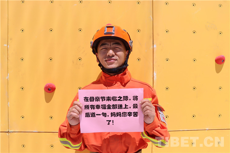 藏族消防員邊瑪桑堆對他母親說:“母親節到了,我祝媽媽節日快樂!媽媽,扎西德勒!”