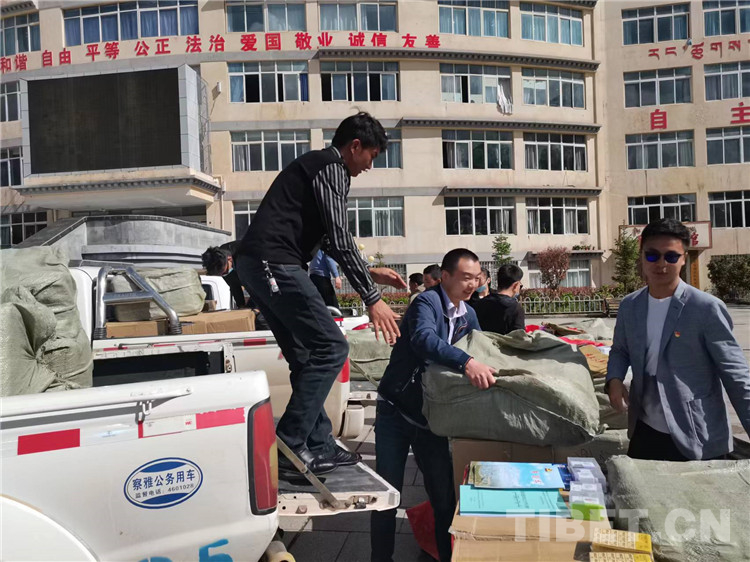 工作人員將“學(xué)習(xí)包”裝車后運往十一縣(區(qū))