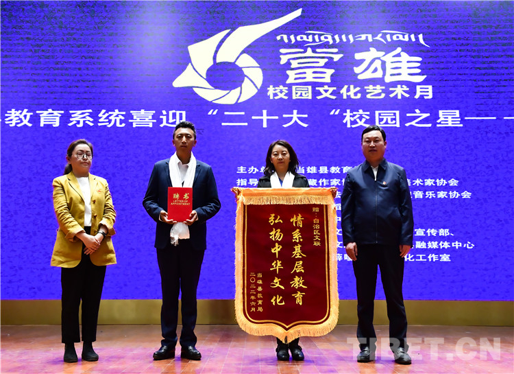 中國西藏網訊 近日,由西藏自治區拉薩市當雄縣教體局主辦的全縣教育系統喜迎“二十大”——首屆校園文化藝術月活動頒獎典禮暨總結大會舉行。據悉,本次活動自5月啟動以來,相關單位大力協作,吸引了1000多名學生參與其中。通過從當雄縣各個學校報送的朗誦、歌舞、寫作、繪畫、羊拐、“吾多”等大量文藝作品中進行篩選,最終評選出147個獨具特色的作品。本次活動營造了積極向上、文明和諧的良好文化氛圍。(中國西藏網 記者/拉姆 由活動主辦方供稿)