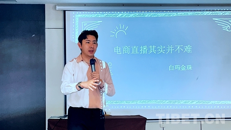 圖為西藏自治區青聯委員、拉薩市政協委員、創業青年網紅白瑪金珠講解電商直播知識和經驗 攝影:拉姆