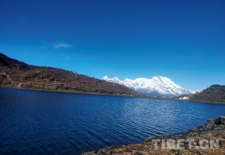 從吉隆鎮出來,沿著峽谷向北盤山而上,約莫一個小時車程就到了扎村朗吉措景區。從停車場沿著景區棧道拾階而上約半個小時,便是朗吉措觀景臺。從觀景臺后向北望去,眼前頓時開闊了,遠處的雪山撲面而來,令人震撼。接連雪山的是一大片草甸和農田。近處山巒重疊,半山腰以上雪還沒有融化完。朗吉措就靜靜安睡在眼前這群山環抱之中,從觀景臺只能看到一個小角,像一個半遮面的小姑娘。沿梯而下來到湖邊,我們走走停停,繞湖一周。蔚藍色的湖水寧靜安謐,陽光撒在湖面,像閃閃發光的小鉆石。雪山、藍天、環山簇擁著湖水,各種角度拍照都難盡其美。