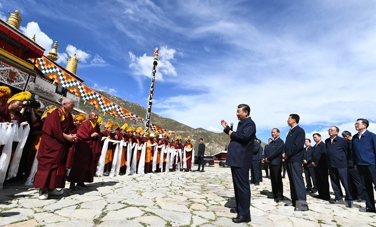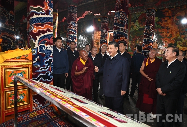 習近平總書記在哲蚌寺仔細察看了措欽大殿,認真聽取西藏自治區宗教工作開展情況和哲蚌寺管委會加強創新寺廟管理工作情況的匯報,并在大殿廣場發表重要講話。