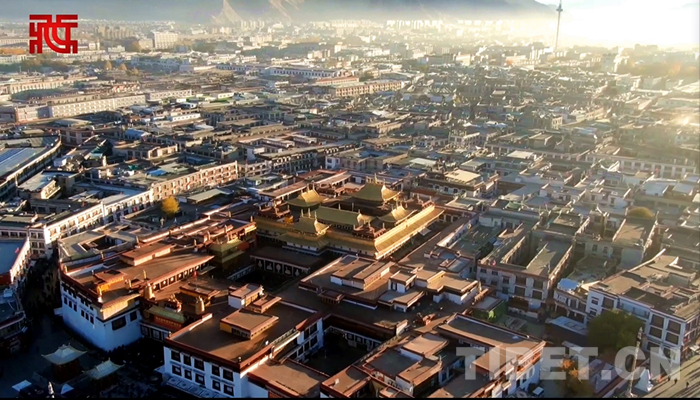 圖為環(huán)繞大昭寺的八廓街 圖片截取自《【雪域視評(píng)·跟著總書記看西藏⑤】千年八廓街見證民族團(tuán)結(jié)》