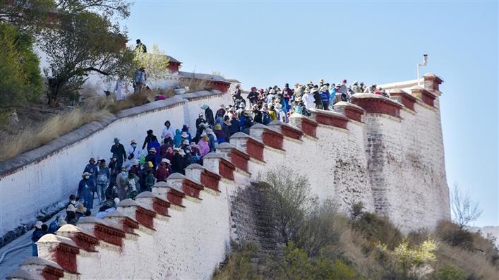 圖為布達(dá)拉宮一年一度的粉刷“美顏”時(shí)刻 圖片來源:西藏日?qǐng)?bào)