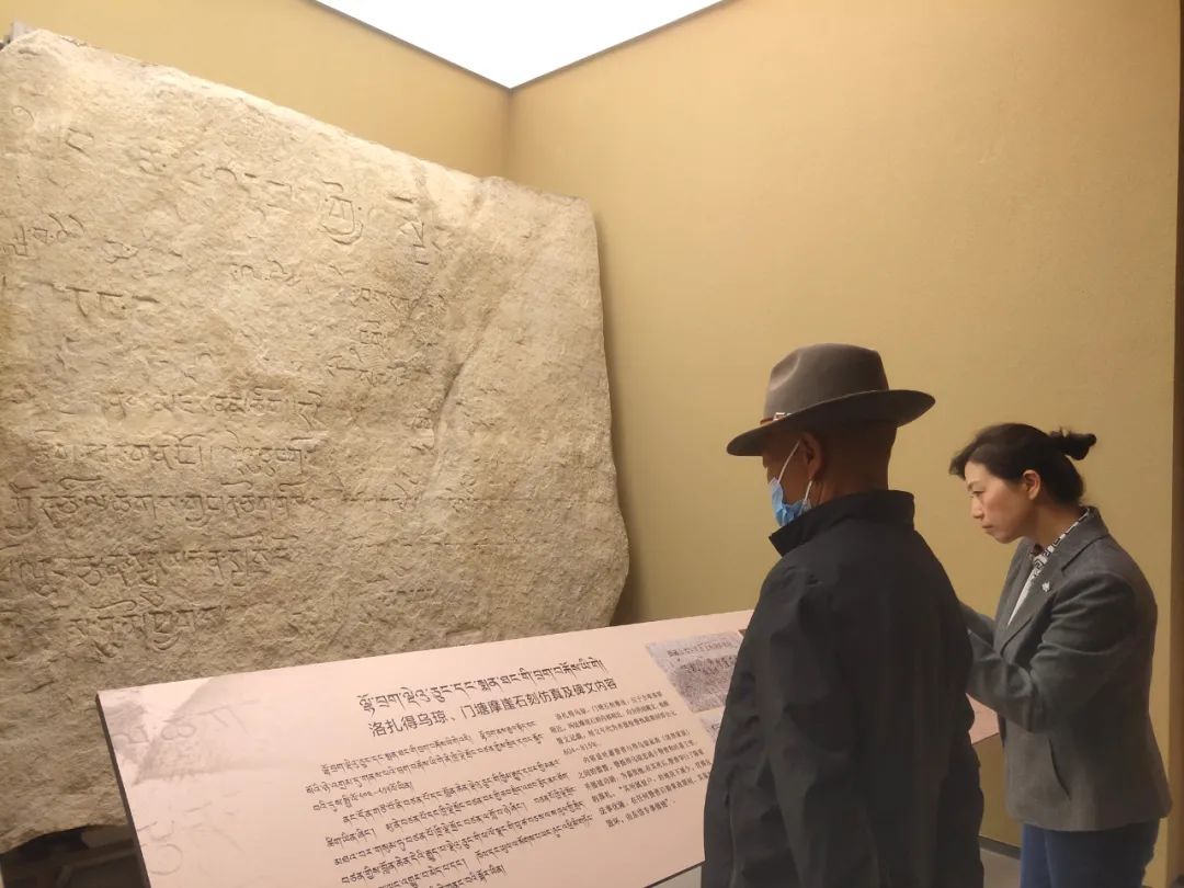 圖為參觀者在山南市博物館駐足了解洛扎得烏窮、門塘摩崖石刻內(nèi)容 圖片來源:西藏商報(bào)