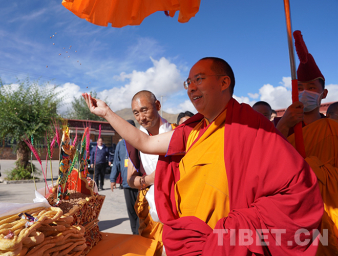 當(dāng)日,全國政協(xié)常委、中國佛教協(xié)會(huì)副會(huì)長(zhǎng)、中國佛教協(xié)會(huì)西藏分會(huì)會(huì)長(zhǎng)班禪額爾德尼?確吉杰布前往山南市隆子縣扎果寺禮佛講經(jīng)。