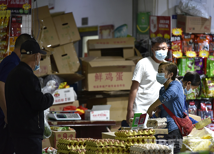 圖為8月9日,市民在拉薩柳梧農(nóng)貿(mào)市場(chǎng)購買雞蛋 攝影:王媛媛