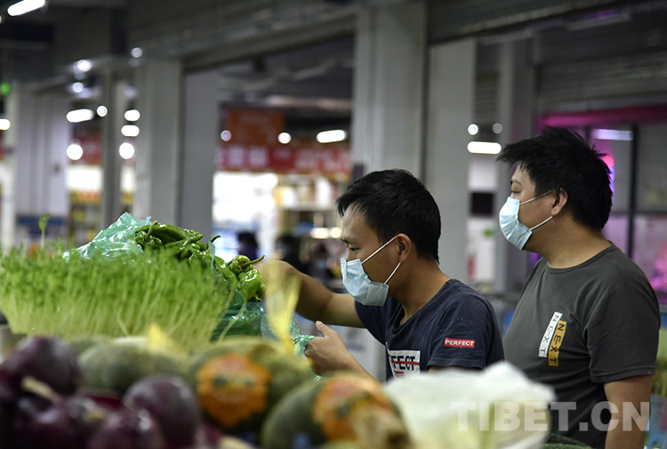 圖為8月9日,市民在拉薩柳梧農(nóng)貿(mào)市場(chǎng)挑選蔬菜 攝影:王媛媛