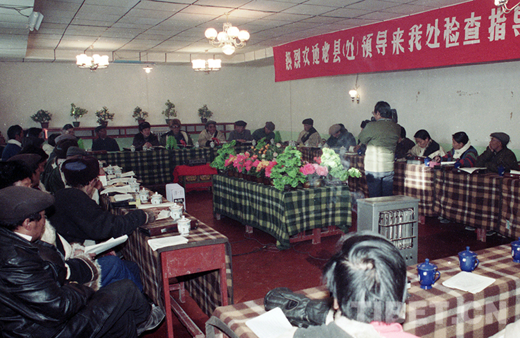 這是西藏那曲地區基層政權建設工作現場會在文部辦事處召開(唐召明1989年12月份攝)