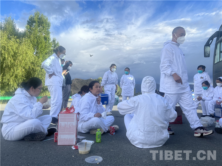 旦增群培,瓊結縣加麻鄉衛生院院長兼瓊結鎮衛生院負責人,他說:沒什么可說的,就是聽從組織安排,哪里需要哪里上。隊員們為了節約物資,減少傳播概率,一直保持著早上工作開始后中間不休息,堅持到下午才吃飯的工作模式。經過大家的團結一致,出色地完成了本次任務。