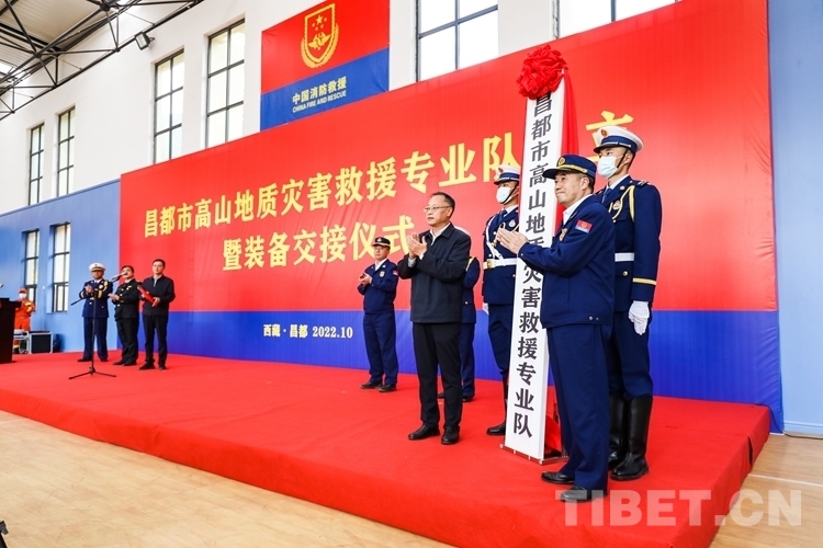 中國西藏網訊 10月6日,西藏自治區昌都市高山地質災害救援專業隊成立暨裝備交接儀式舉行,這是西藏首支高山地質災害救援專業隊。
