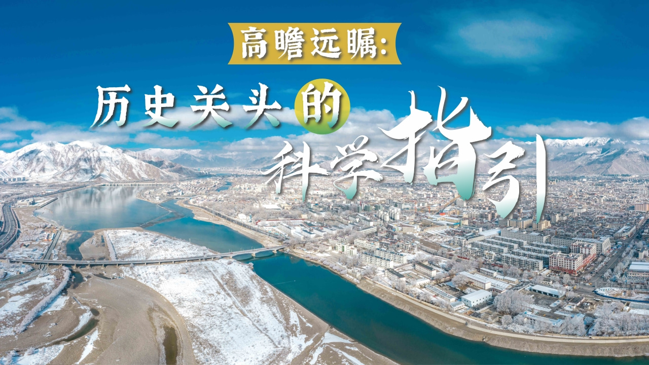 以習近平同志為核心的黨中央高瞻遠矚、審時度勢,在領導西藏人民應變局、開新局的偉大實踐中,堅持解放思想、實事求是、守正創新,對關乎西藏工作的重大理論和實踐問題進行新的深邃思考和科學判斷,為西藏走好新時代的趕考路把舵領航——