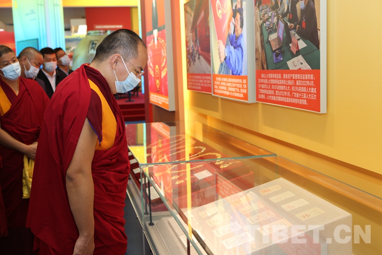 參觀結束后,班禪表示,新時代十年以來我們國家所取得的偉大成就,不是單一方面,而是政治、經濟、文化、社會、生態文明等方面的綜合發展;發展成果不是局限在一個民族、一個地方,而是惠及全體中華民族。新時代十年全方位的歷史性成就證明,只有在以習近平同志為核心的黨中央的領導下,中華民族偉大復興的征程才能夠順利前行;習近平新時代中國特色社會主義思想是中國人民戰勝一切困難挑戰、解決一切問題的根本法寶,是我們更好地為祖國統一、民族團結做貢獻的精神動力。