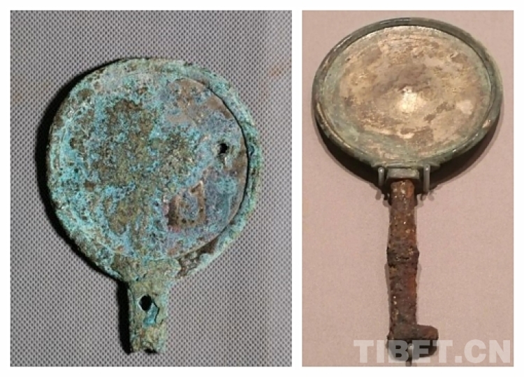 圖為西藏考古發現的帶柄銅鏡