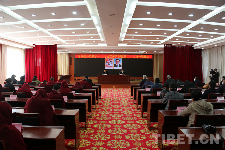 中國西藏網(wǎng)訊 11月18日,西藏自治區(qū)向各族各界代表人士傳達(dá)宣傳貫徹黨的二十大精神通報會在拉薩市召開,來自民族界、宗教界、黨外知識分子和新的社會階層人士、非公經(jīng)濟(jì)界以及歸國藏胞約50位代表參加。