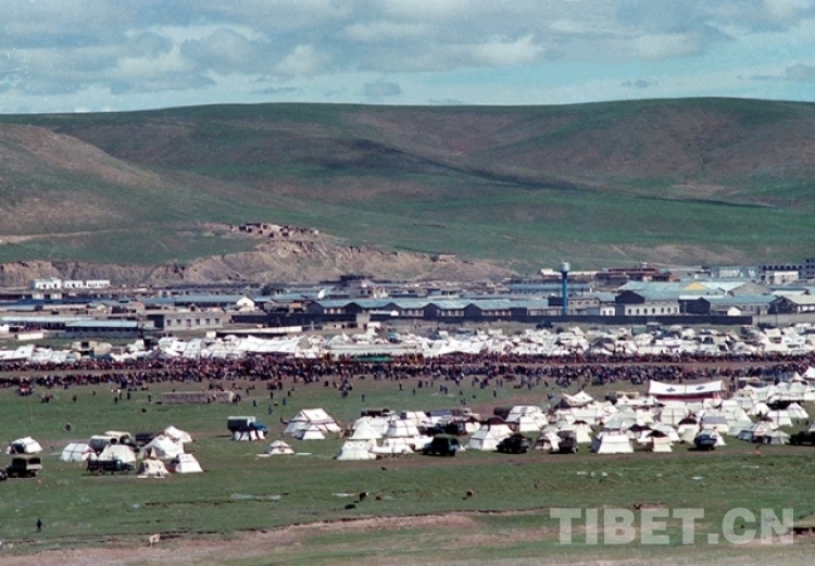 這是在藏北首府那曲鎮賽馬會上,臨時搭建起的各式帳篷(唐召明1987年夏攝)