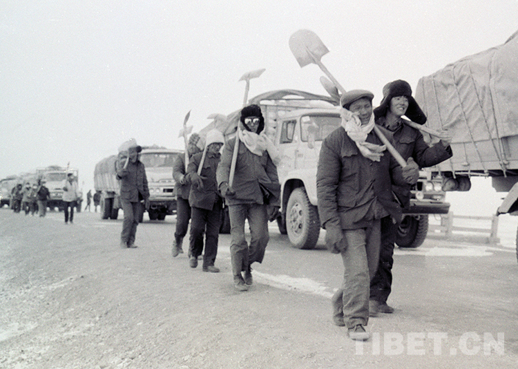 此時,眼前風雪迷茫,天寒地凍。唐古拉山口是咽喉要沖。特別是國家援助西藏的四十三項重點工程已進入施工高潮。而被阻隔在唐古拉山上的車輛中,有百分之八十是搶運工程所急需的基建材料。一周的時間,109道班的二三十名工人在前來支援的推土機幫助下,晝夜苦戰,連推帶挖。路通了,工人們的手套卻和皮肉凍在一起,只能用刀子一片一片割下來,鮮血淋漓。